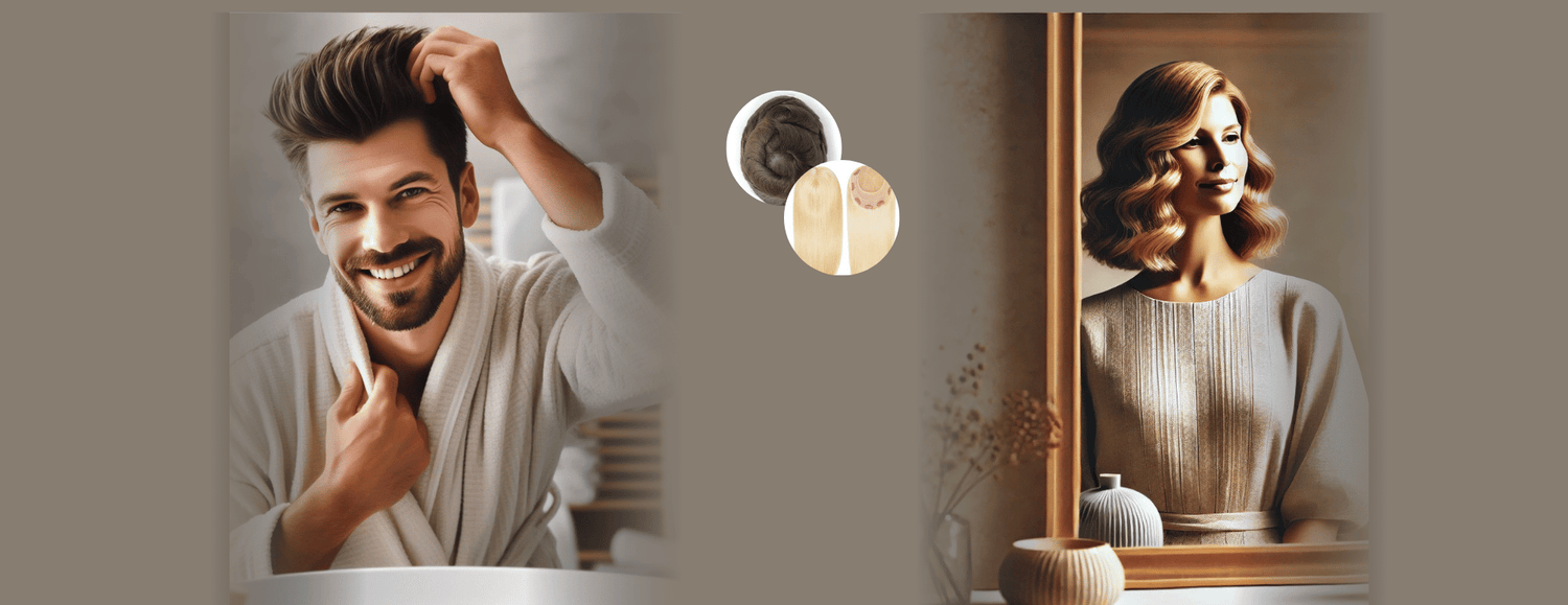 Extensions capillaires et prothèses partielles : Des solutions flexibles pour ajouter du volume ou couvrir des zones spécifiques de perte de cheveux, adaptées aux hommes et aux femmes.